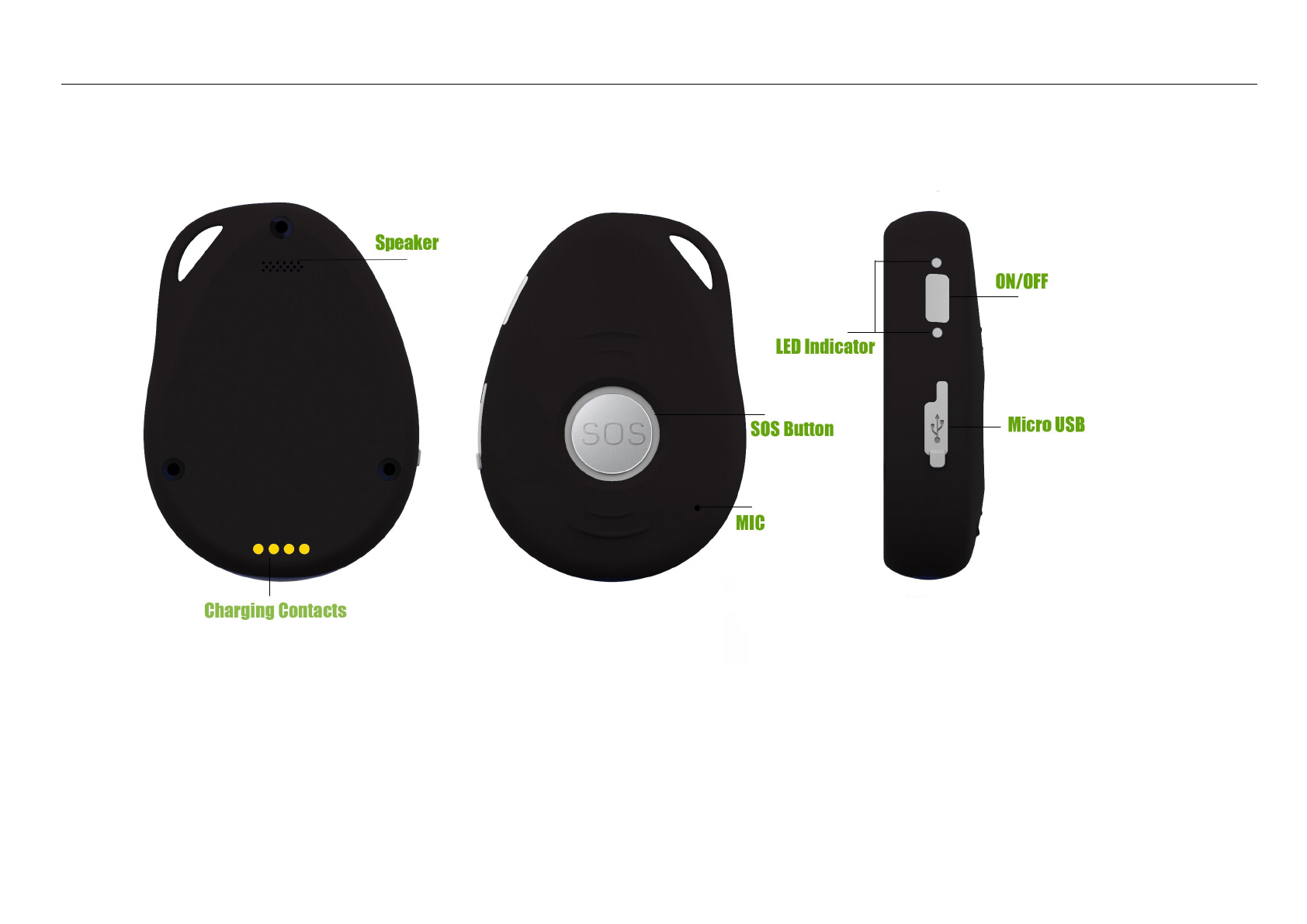 side button and SOS button together for 1 second until the LEDs off.